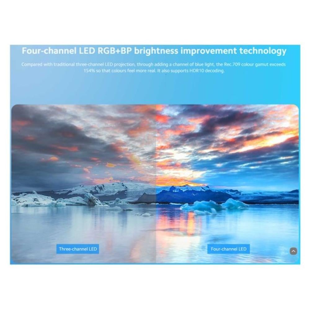 - دقة 1080 بكسل، للحصول على وضوح عالي المستوى: دقة 1920x1080 Full HD (1080p)، يعرض Mi Smart Projector 2 صورًا عالية الدقة.
