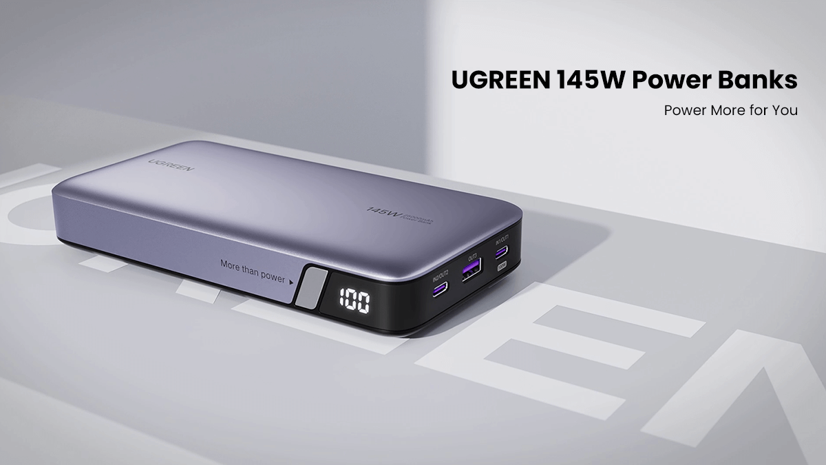 لا تدع نفاد البطارية يعيق تقدمك بعد الآن! احصل على شاحن يوجرين المتنقل 25000mAh بقوة 145 واط، واستمتع بقوة لا تنضب في أي زمان ومكان.