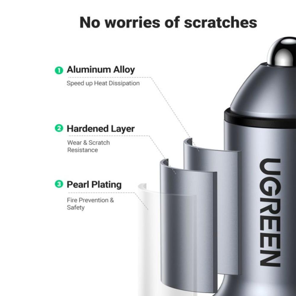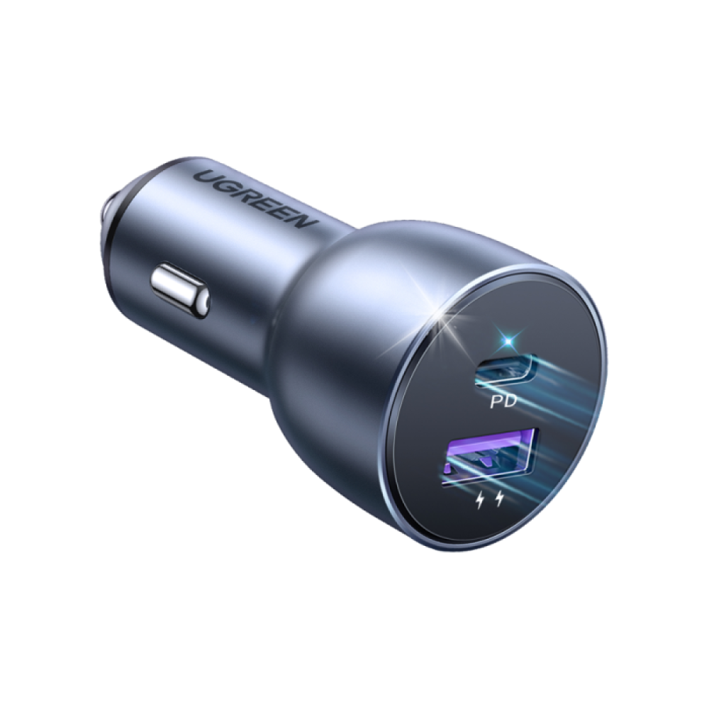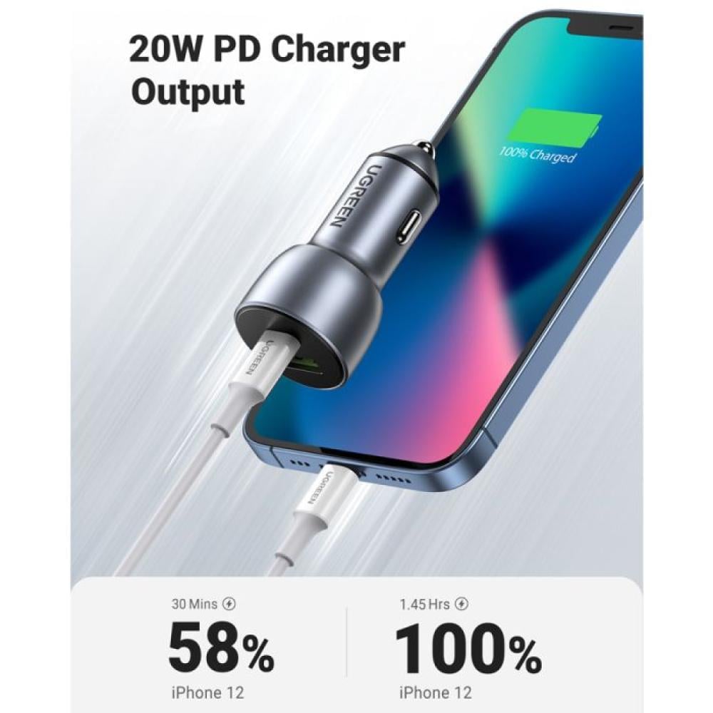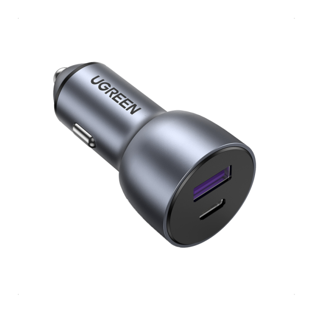 شاحن سيارة يوجرين بمنفذ PD ومنفذ USB وبمجموع القوة 52.5 واط - رمادي