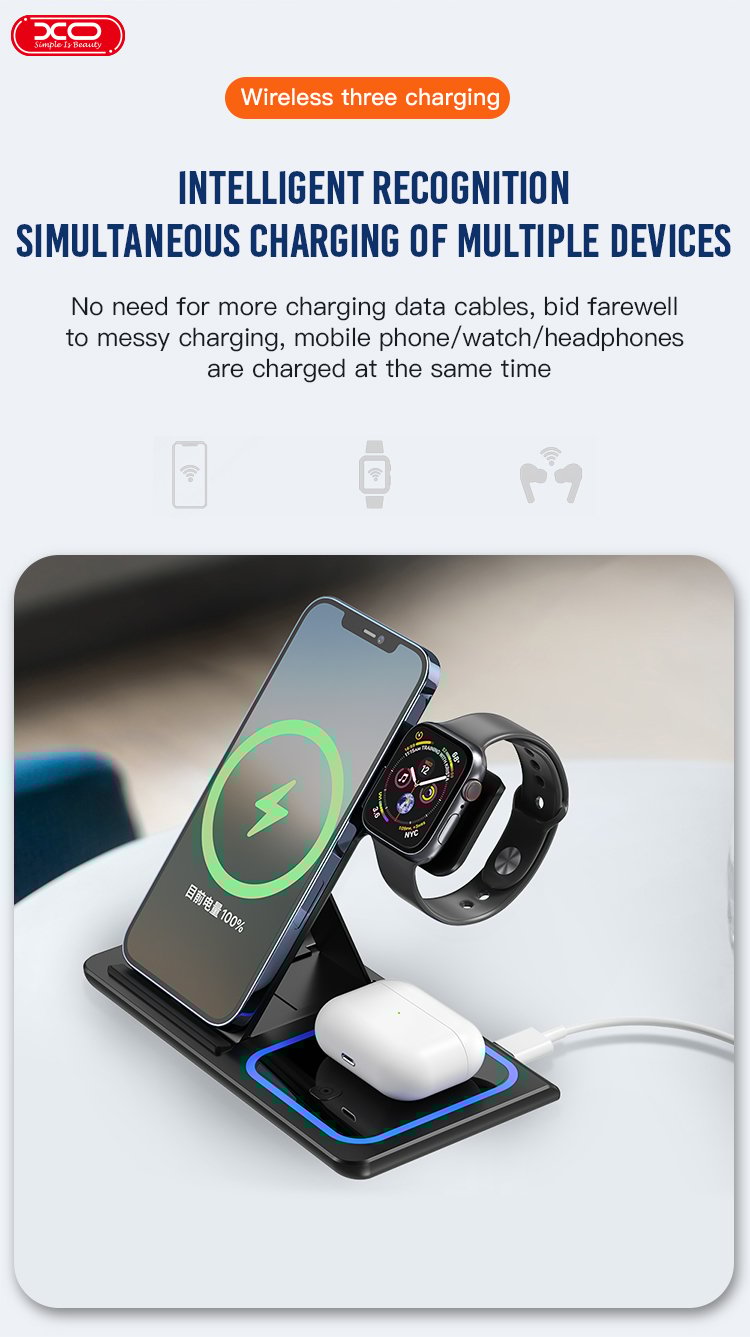 مع قاعدة شحن لاسلكي 3 في 1 من XO