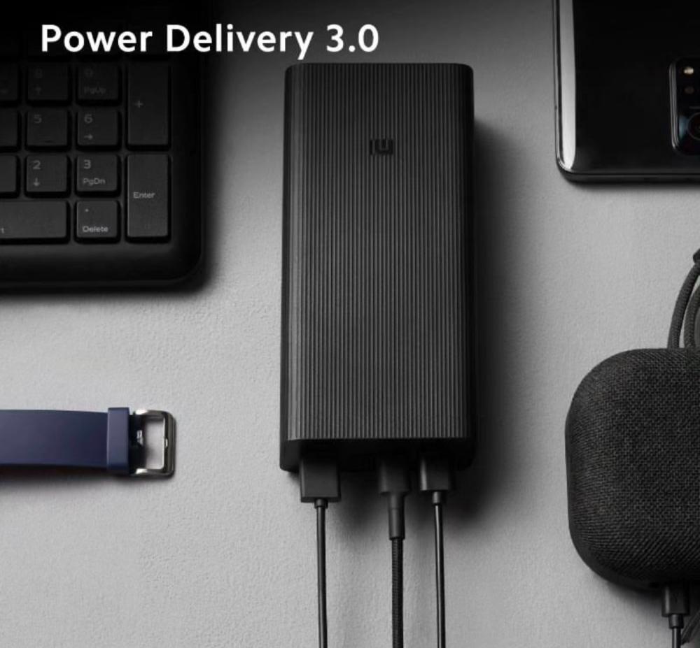 - شاحن متنقل شاومي يدعم الشحن السريع عبر منفذي USB-A ومنفذ USB-C، مما يوفر شحنًا سريعًا وفعالًا.
