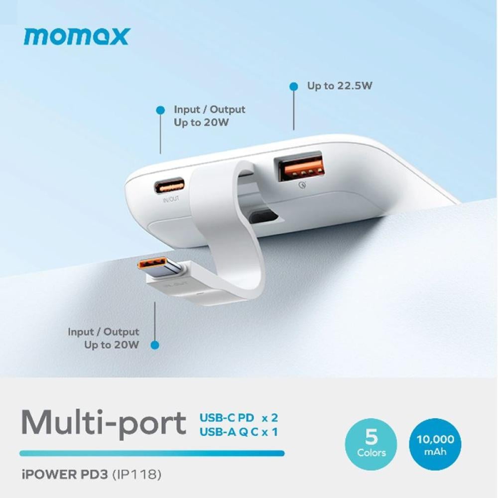 شاحن متنقل موماكس آي باور PD3 بسعة 10000 مللي أمبير وبقوة 22.5 واط - أزرق